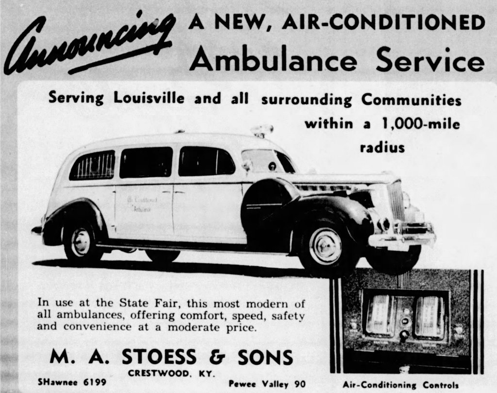 As the 20th-century came upon us, Kentucky and other parts of the United States would continue to offer civilian ambulance services. These private ambulance services were typically operated to transport the sick and infirm from the scene of an accident (or the home) directly to the hospital. Initially, attendants were often untrained and thus were not able to provide any basic first aid to patients. The goal here was to get the patient to the hospital so that care could begin as quickly as possible. In more densely populated areas, ambulance services would sometimes have an attendant along with a physician or intern. These were often limited to ambulance services operated by hospitals. While ‘ambulances’ were not mass-produced yet, the burden often fell upon funeral homes. This was for a very simple reason: hearses. Hearses could serve double duty and they were the easiest motor vehicles to transport a prostrate/supine patient without having to modify or make expensive changes to a vehicle. These vehicles were frequently referred to as combination cars. A hearse would be used to transport the dead but could also be converted in a matter of minutes to work as an emergency transport vehicle. Combination vehicles typically had emergency flashing or rotating lights of amber or red colors. The former was often used during a funeral procession while the latter, alone or in combination with the amber lights, could be used for emergency transports. Many combination vehicles also contained two-way radios, a removable stretcher for patients (or to move a deceased person), easily modified seating in the rear (e.g. folding seats), along with a cabinet containing medical supplies that could also be hidden when not in use. Most combination vehicles were made using a Cadillac chassis while companies like Miller-Meteor, Superior, and Cotner-Bevington customized the vehicles.