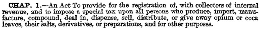 The Act was introduced by and named after United States Representative Francis B. Harrison of New York. Harrison was Governor-General of the Philippines, under Woodrow Wilson, and noticed a burgeoning dissemination of opium. Generally speaking, opium was not a new creation, but it was increasingly popular to the United States around the Civil War and near the start of the 19th-century. The explosion in popularity resulted in companies, including established pharmaceutical companies, creating products containing opium or cocaine. Products ranging from cigarettes to cosmetics were infused with cocaine or other substances. Some of these were also marketed towards infants and children. It was America’s new fad and, to some, a cure-all for any malady.