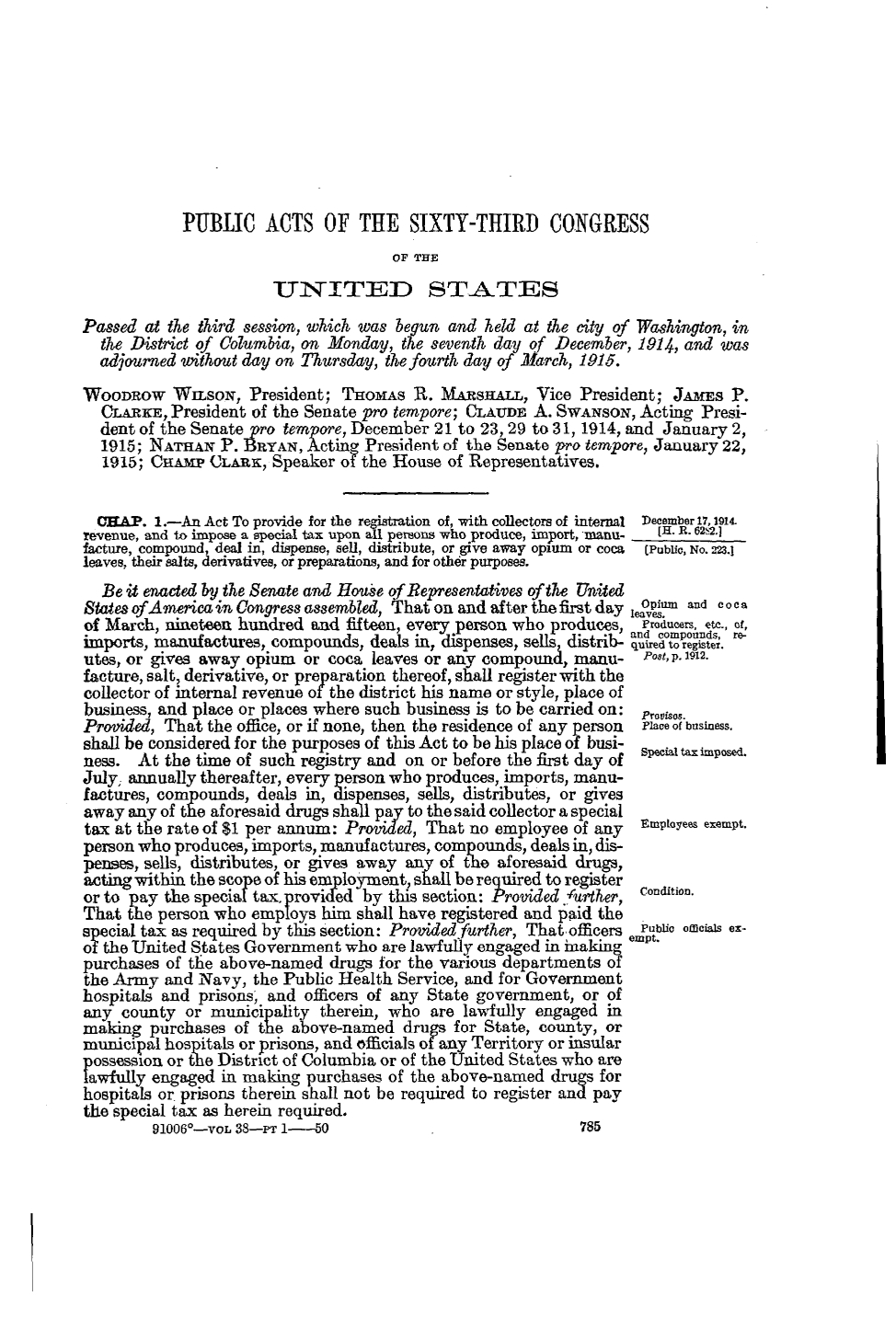 - Harrison Narcotic Act, ch. 1, 38 Stat. 785 (1914)