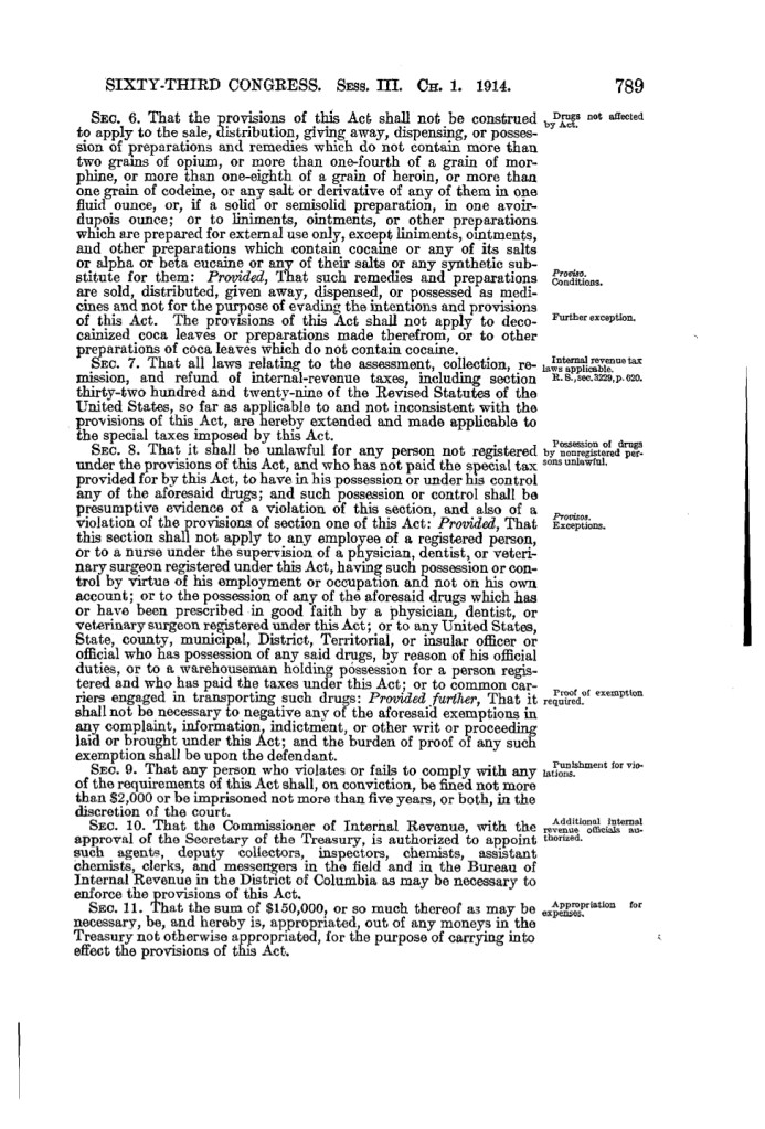 - The Harrison Narcotic Act. (1920). Virginia Law Review, 6(7), 534–540.