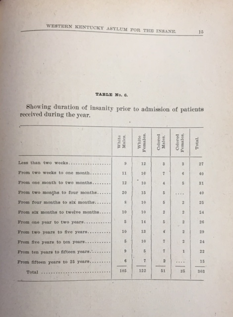 Established in 1848 as the Western Lunatic Asylum of Kentucky in Hopkinsville, the original tract of land, “Spring Hill,” was composed of 386 acres and was purchased for $1,971.50 — $5.14 per acre. Citizens of Hopkinsville raised money for the land, according to the hospital’s history. The first patients were admitted in 1854 and by 1860 there were approximately 200 patients. On November 31st, 1861 a fire caused extensive damage to the main building; while there were no serious injuries, one male patient burned to death after he ran back to his room and locked himself in. Several patients ran away from the hospital into the community but were later returned. Since the fire left the hospital without adequate living quarters, some of the stable patients were returned home to their families. Paying male and female patients were relocated to hotels. The non-paying male and female patients had to stay elsewhere. The boarding house of Bethel College was purchased and non-paying female patients were housed there. The non-paying male patients returned to the campus and stayed in the engineering house; log cabins were later built to help ease with the overcrowding. Employees were required to live in the hallways with patients 24/7. The winter following the fire proved to be difficult for patients and employees and nearly every attendant at the hospital resigned their positions because of the added stress and demands.