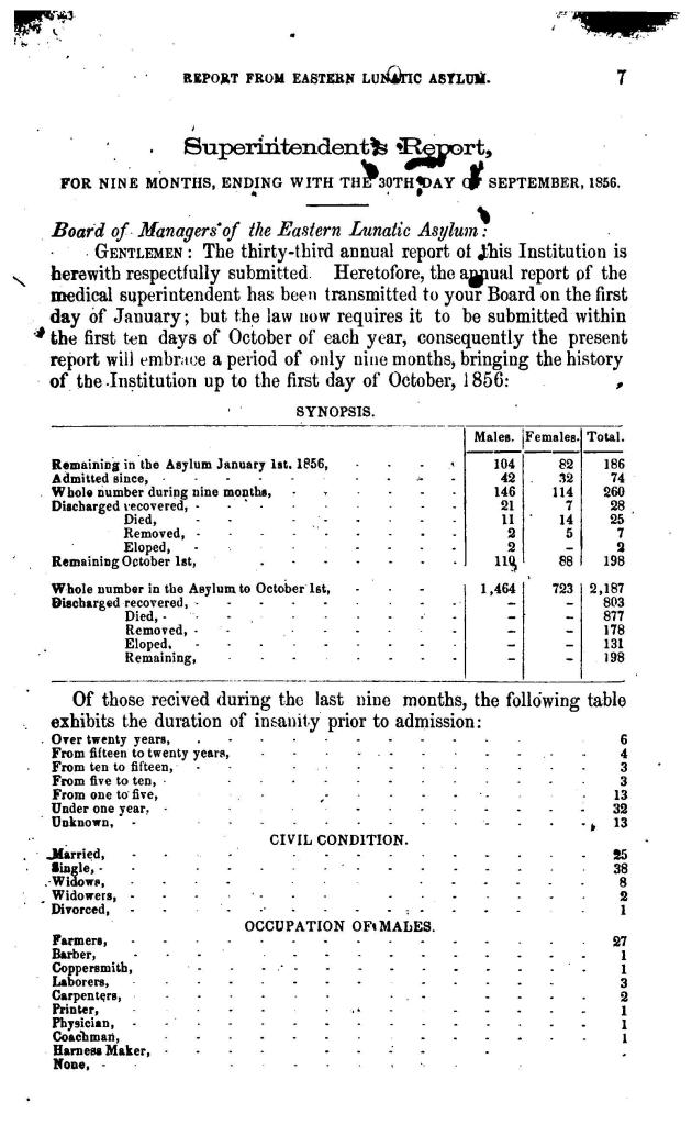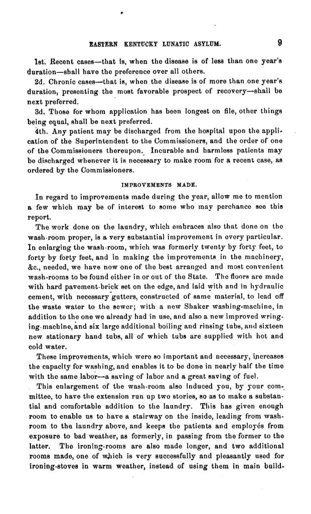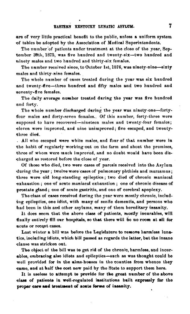 - Kentucky Lunatic Asylum. (1862). 1845-1862 annual reports. Lexington, KY: Directors and Physicians of the Kentucky Lunatic Asylum.
