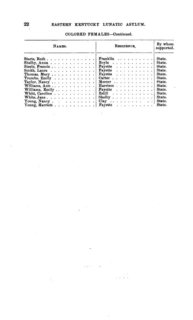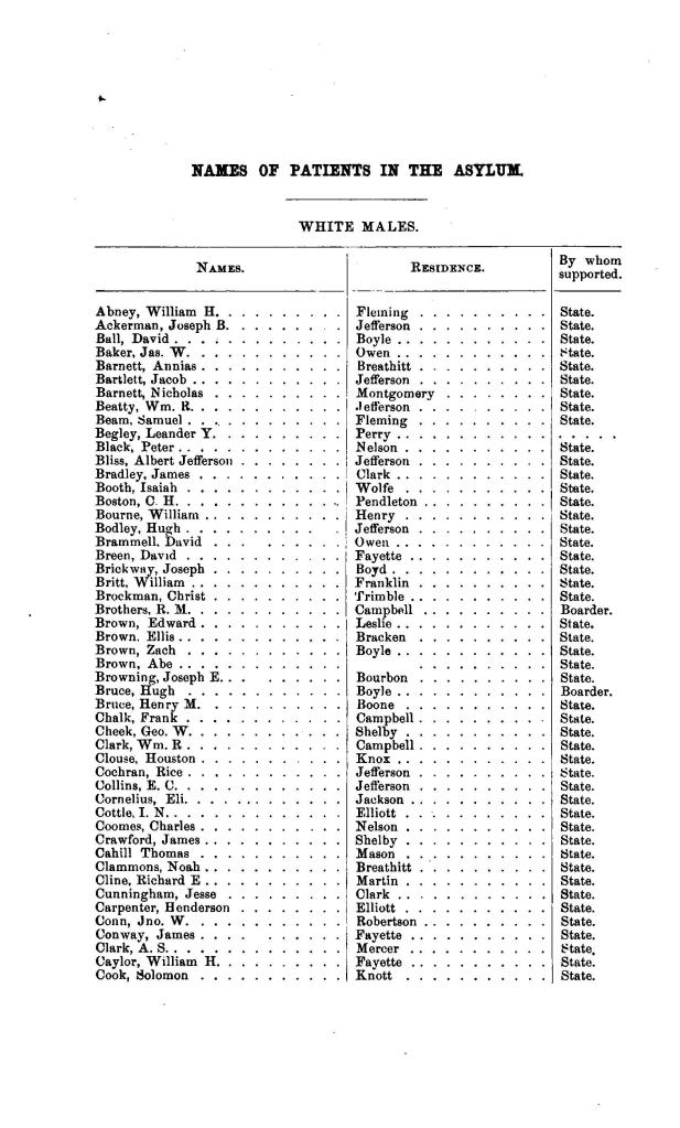 - First Kentucky Lunatic Asylum (1874). 1873-1874 annual report. Lexington, KY: Officers of the First Kentucky Lunatic Asylum.
