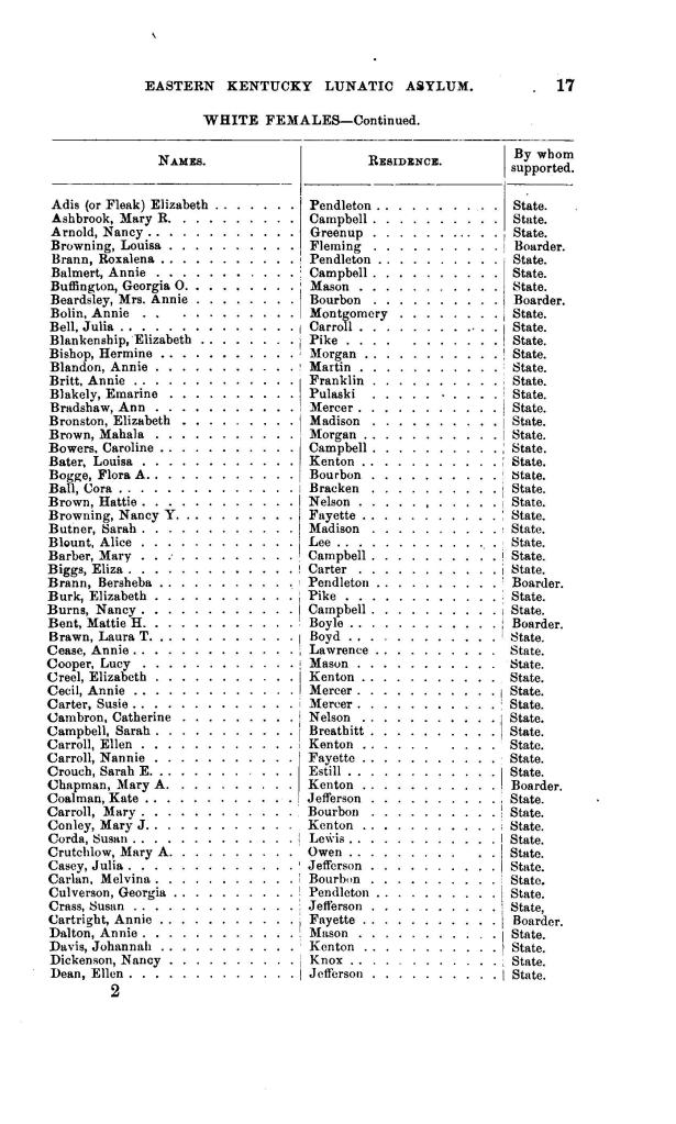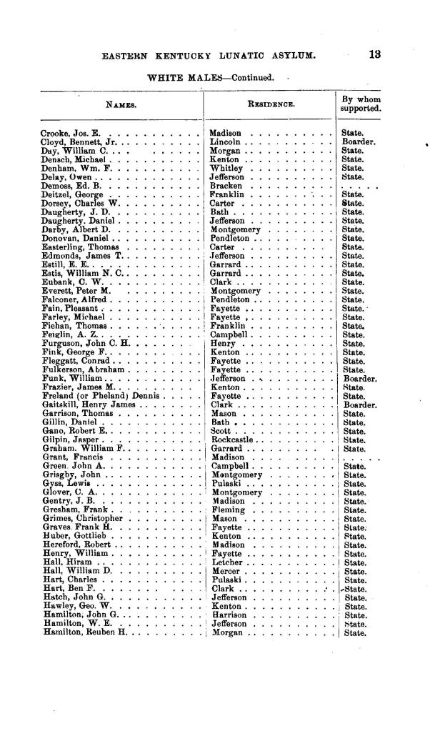 - Eastern Kentucky Lunatic Asylum (1886). 1886-1887 annual report. Lexington, KY: Directors and Physicians of the Eastern Kentucky Lunatic Asylum.