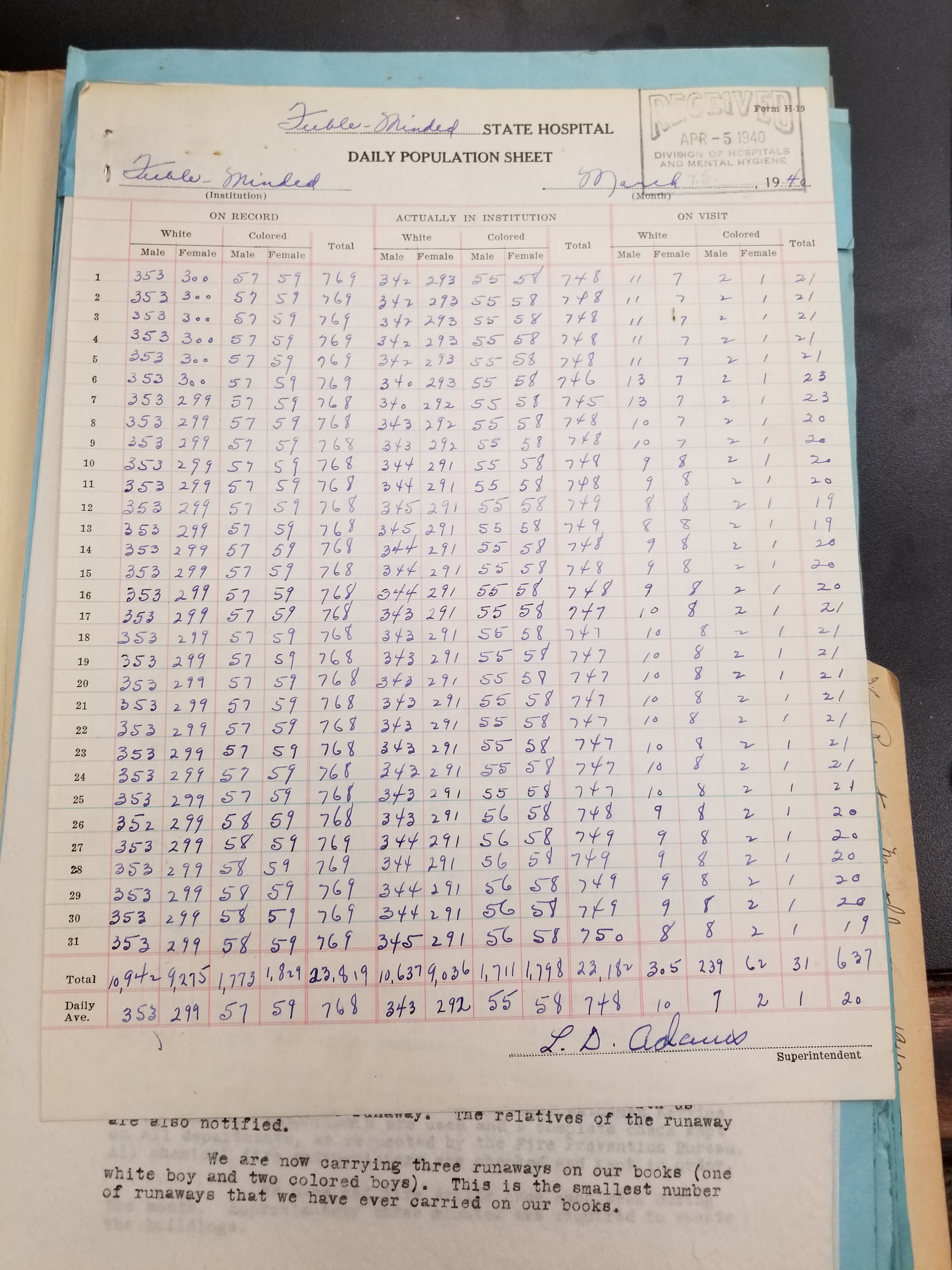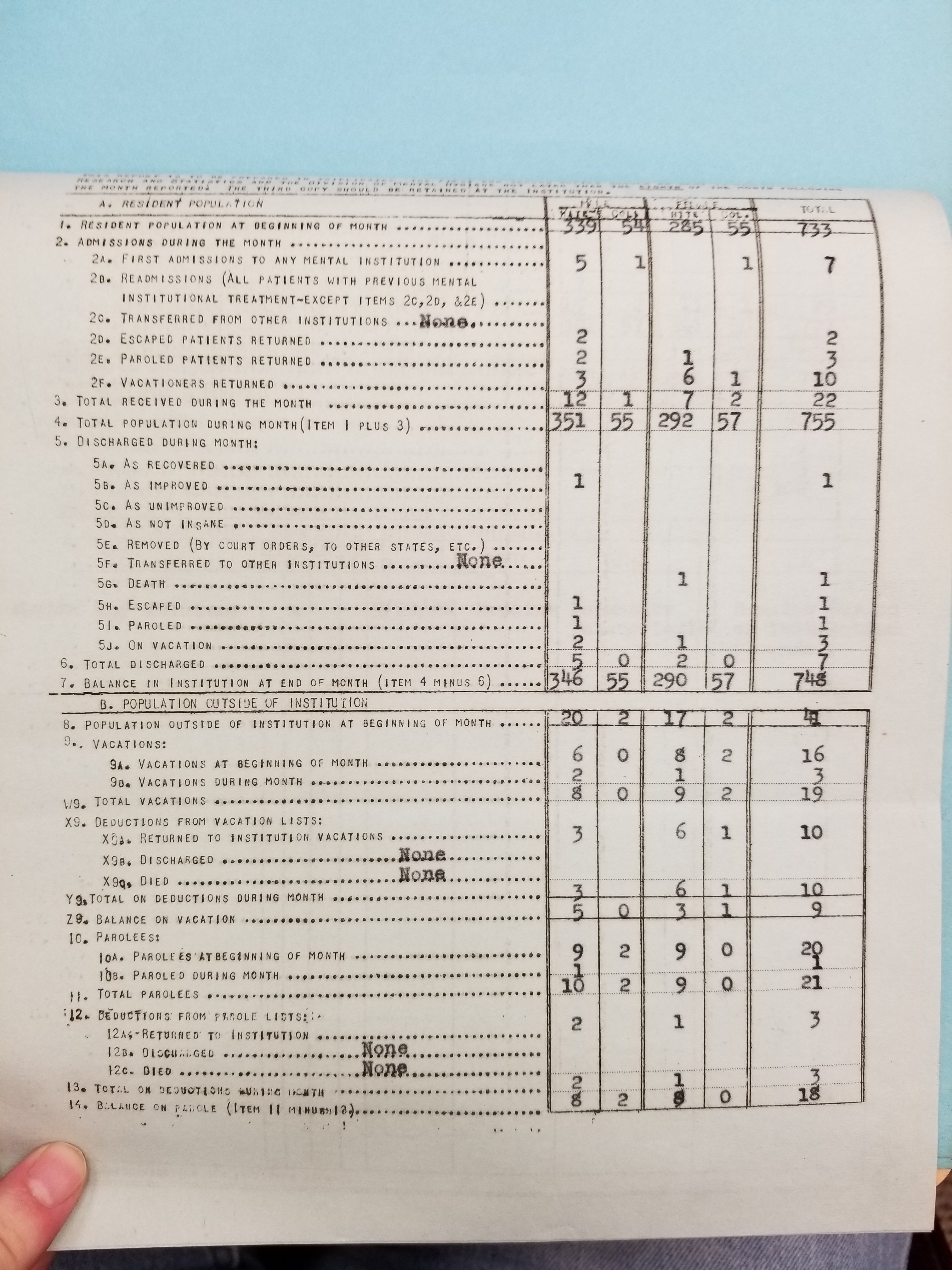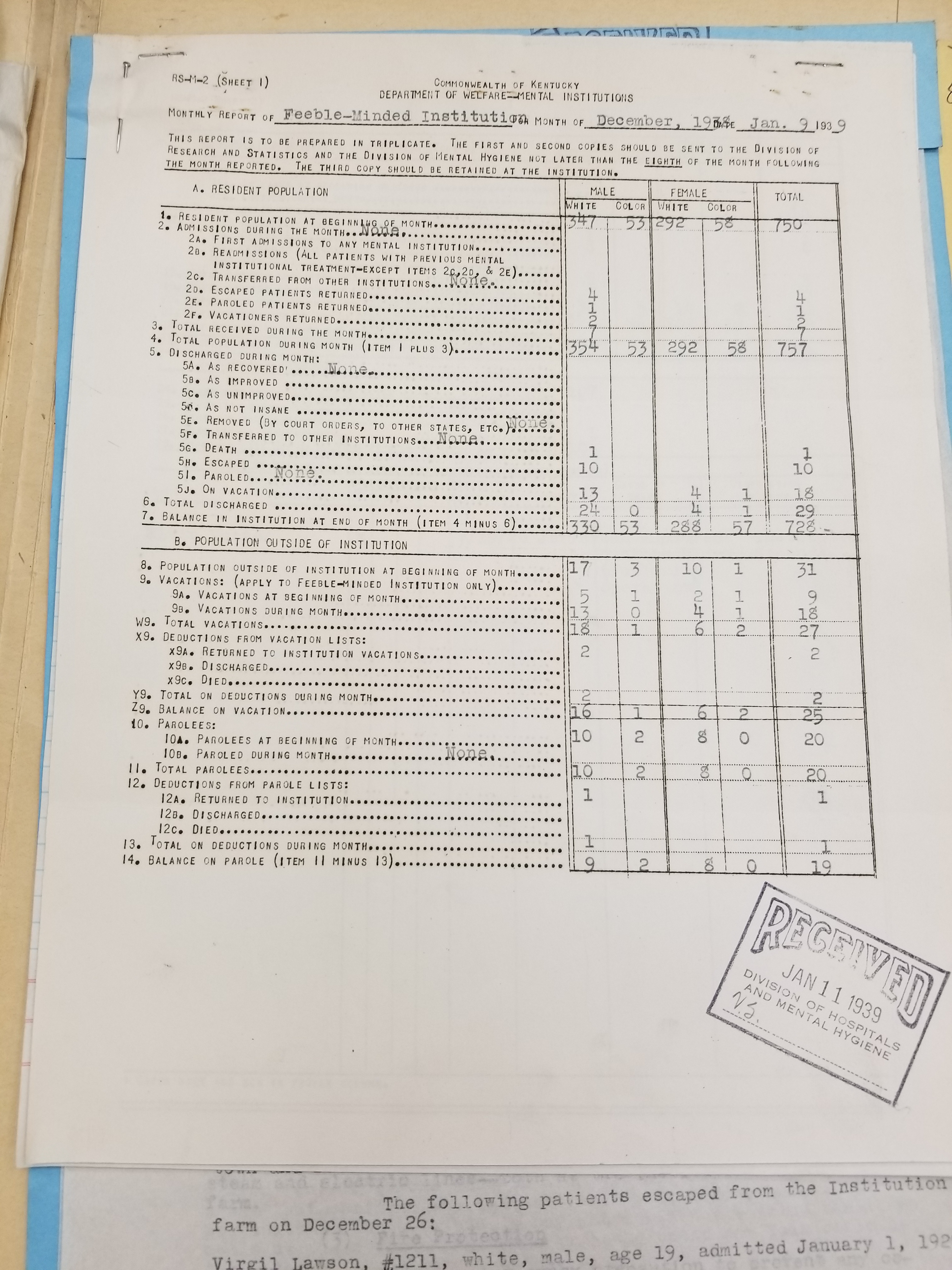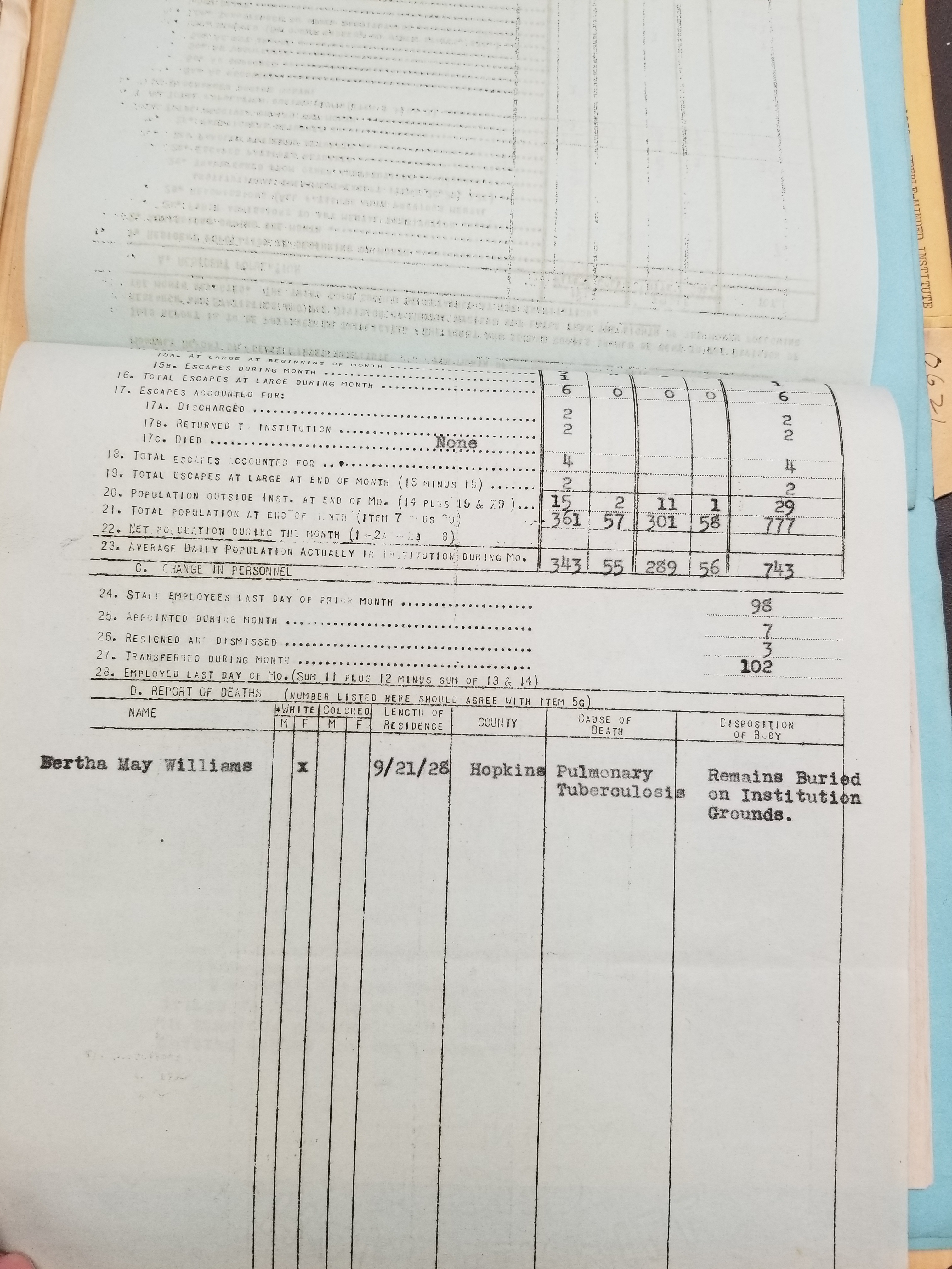 - Frankfort State Hospital and School (Frankfort, Kentucky). Monthly Reports, 1938-1952. Record Group 1428F, OCLC 907013356. Special Collections, Kentucky Department for Libraries and Archives, Frankfort, KY.