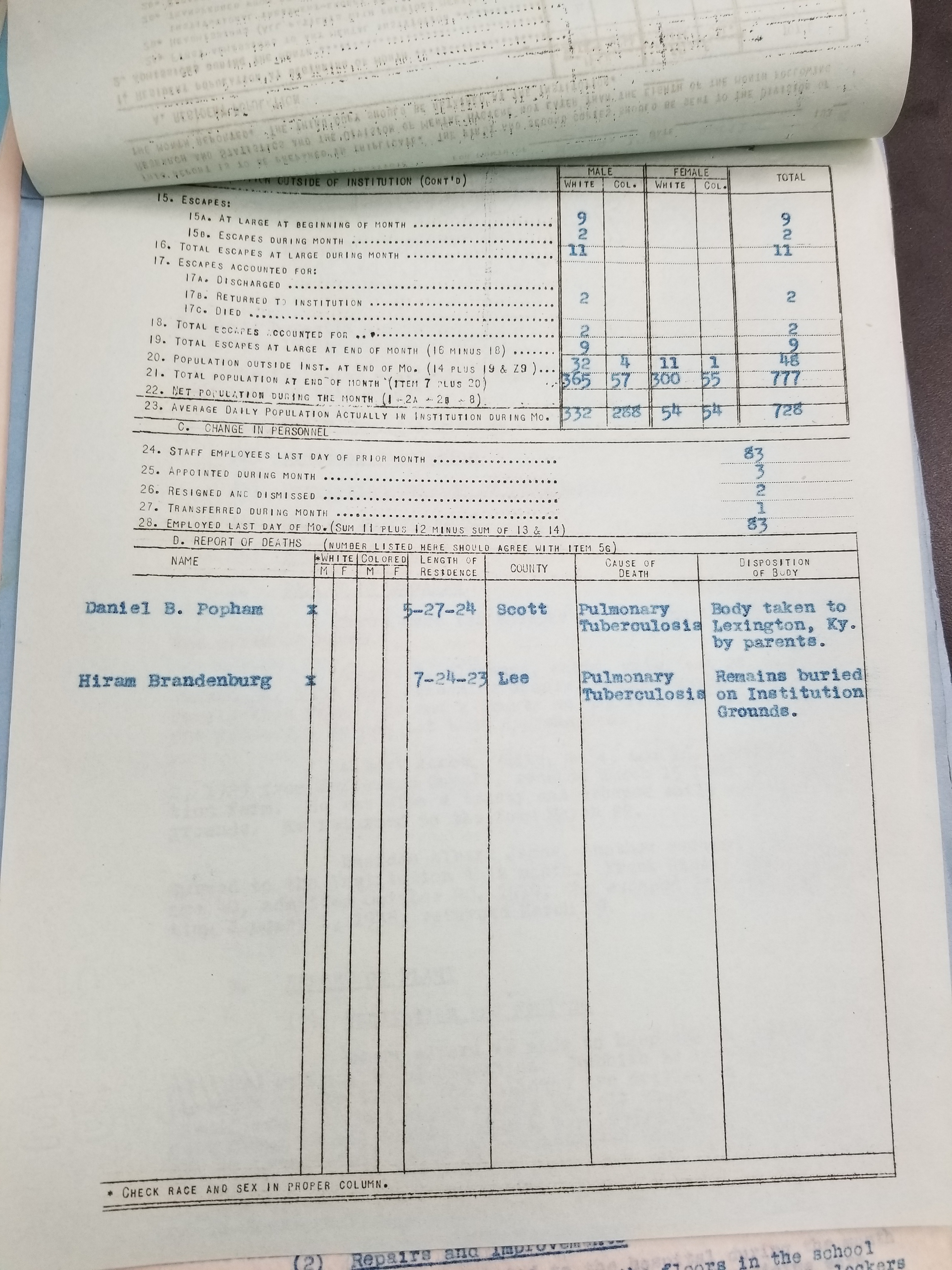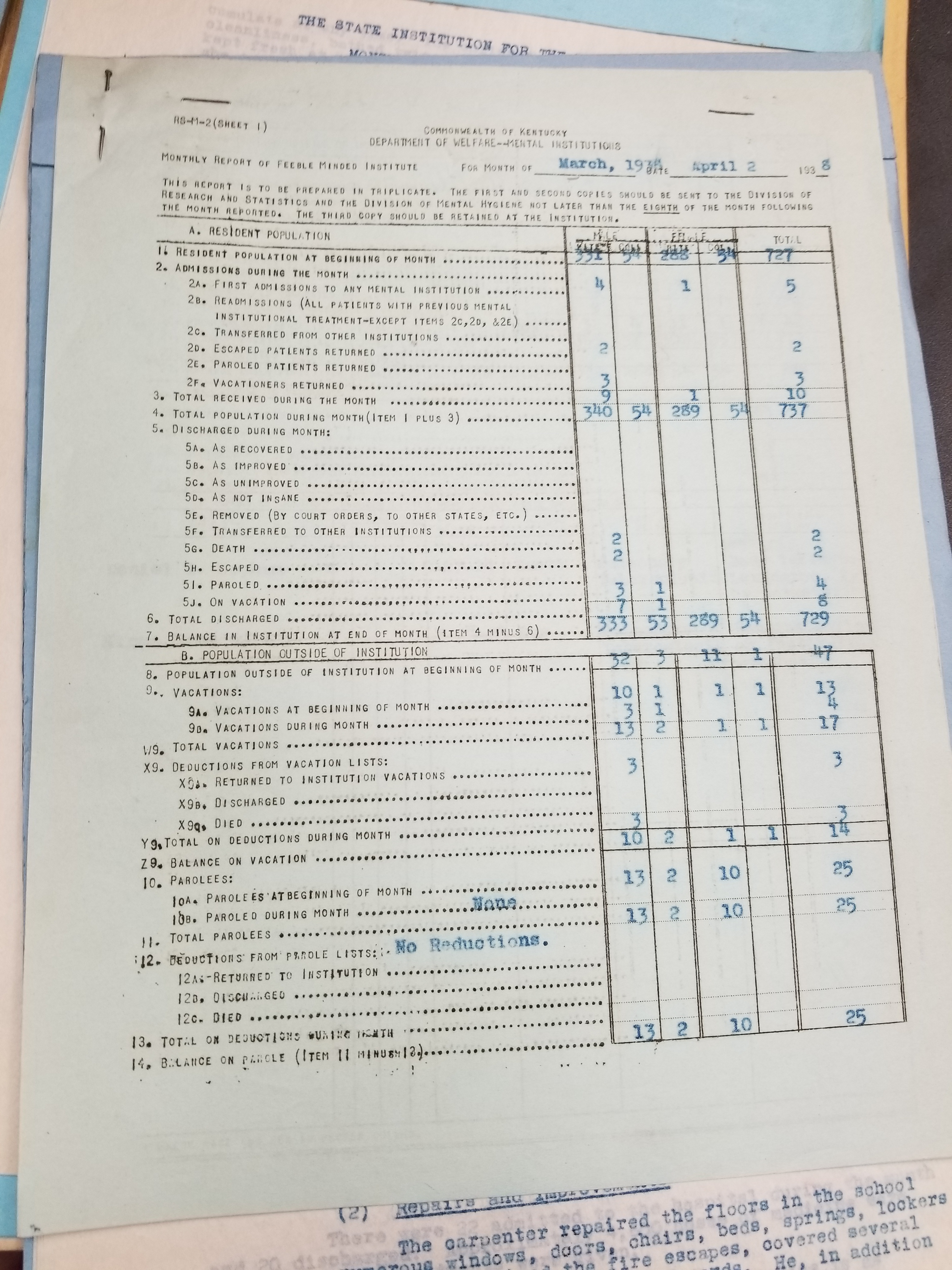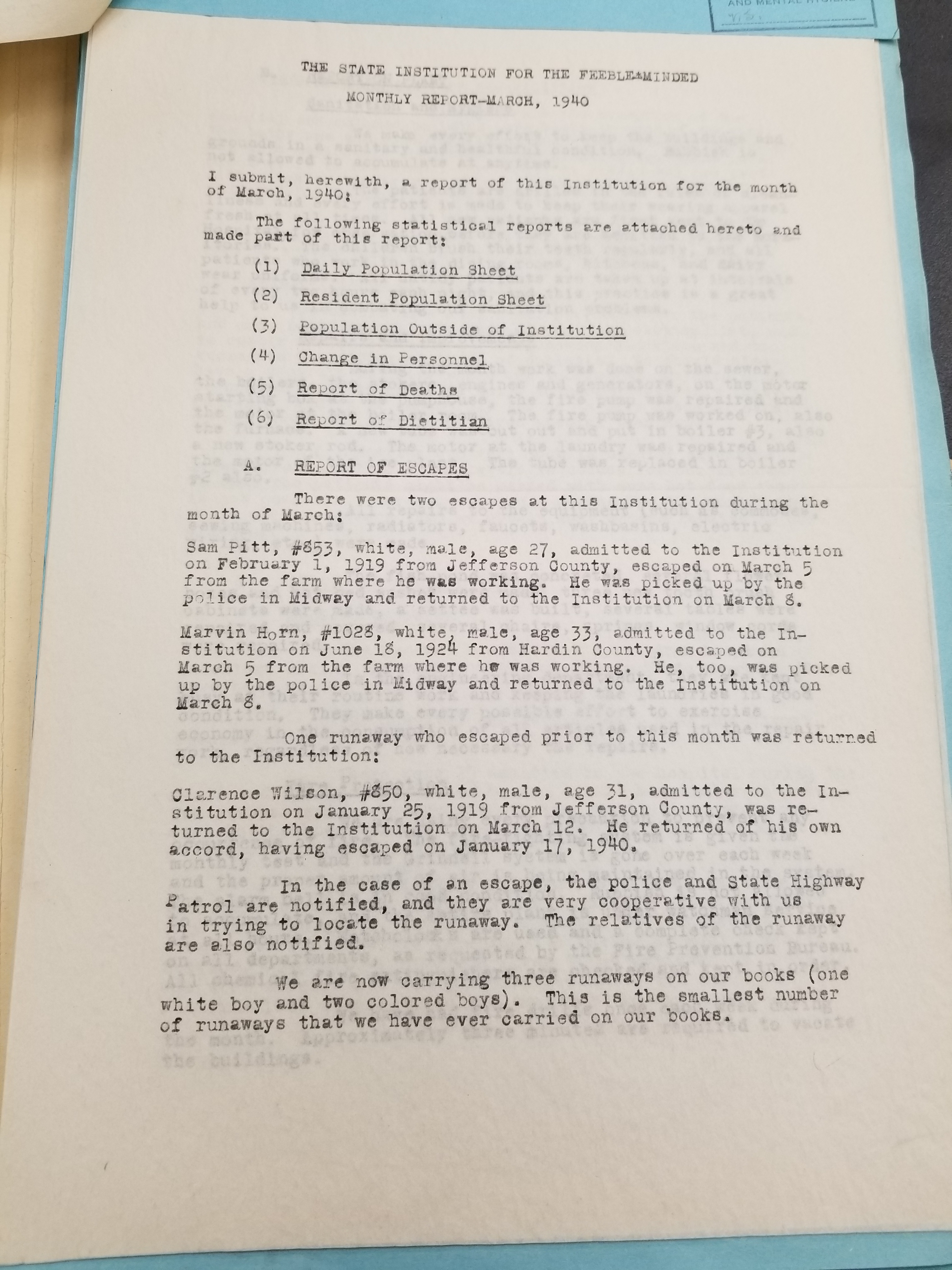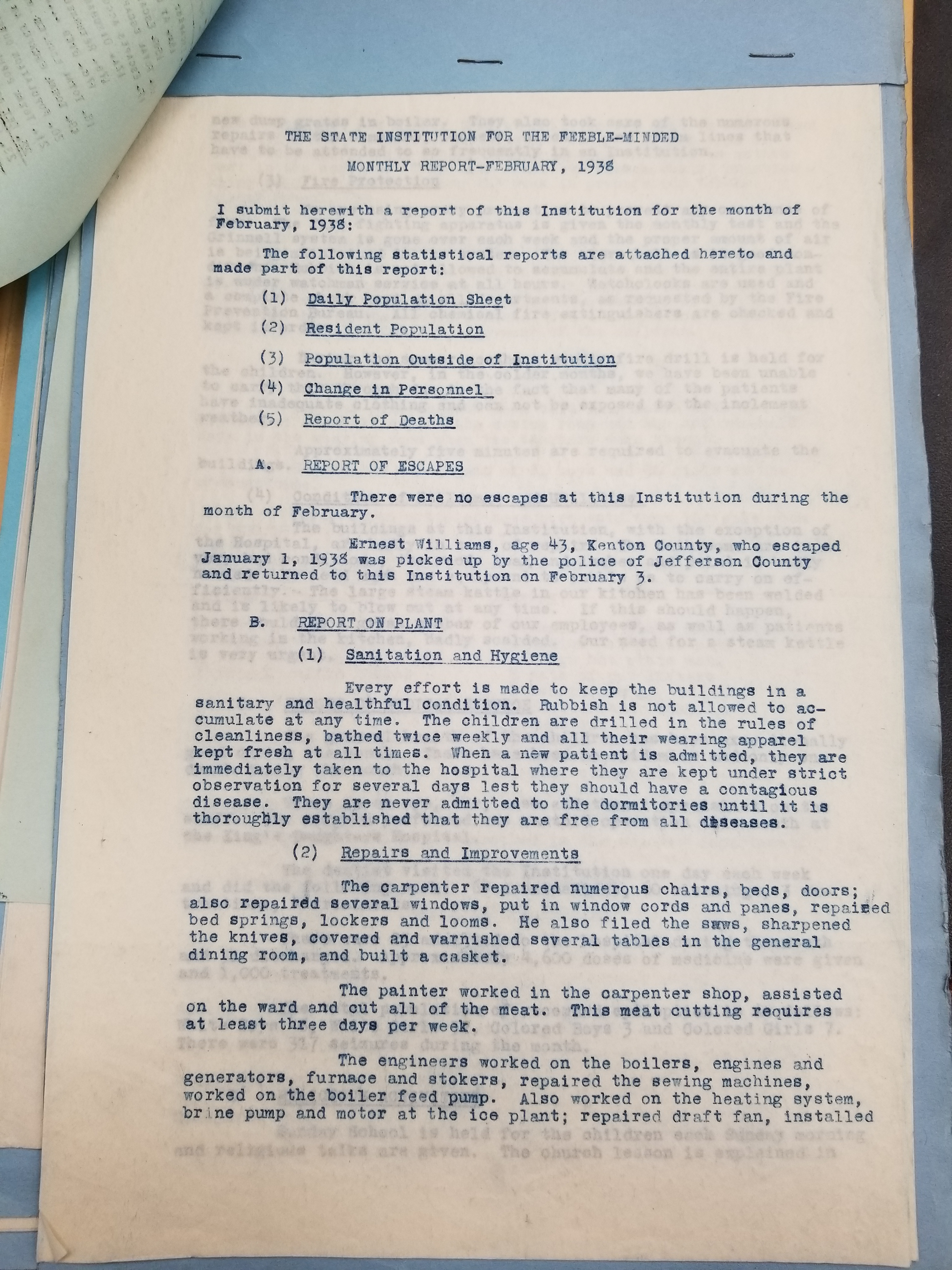 These reports show the activities of Frankfort State Hospital/State Institution for the Feeble Minded for the specified month. Please note that these reports will be better grouped by month and date as we upload more of them. Please check back often for updates.