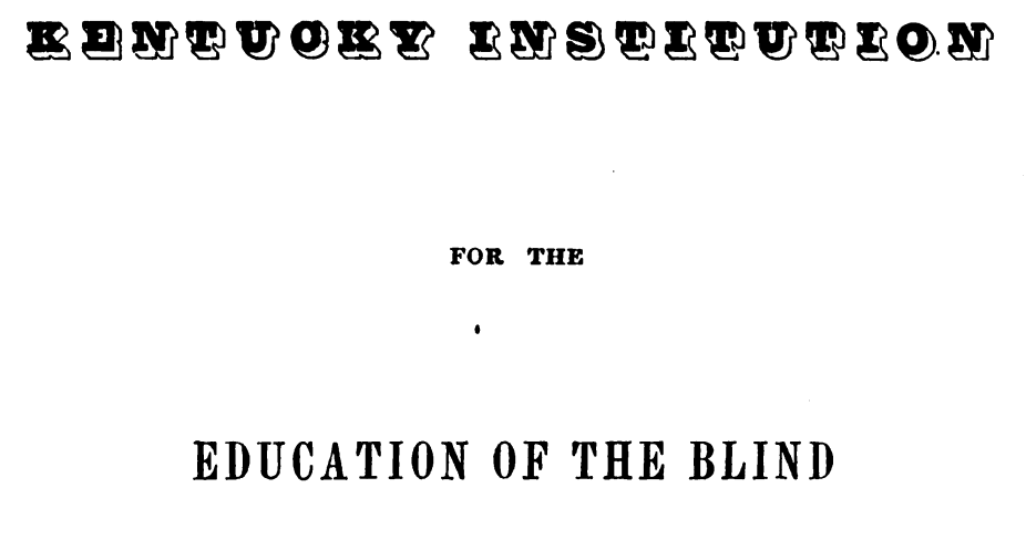 - Kentucky School for the Blind. Report. Frankfort, Ky. [etc.], 1843.