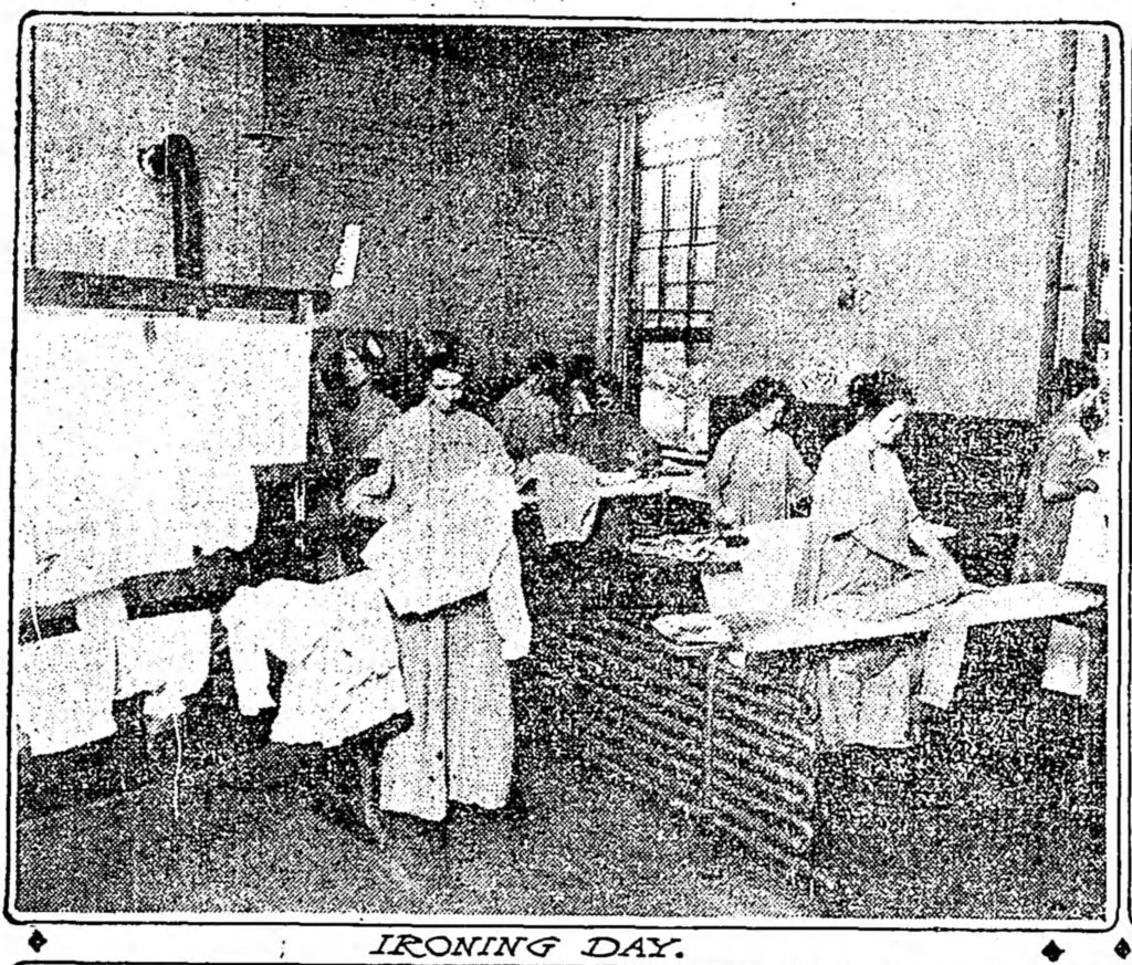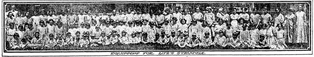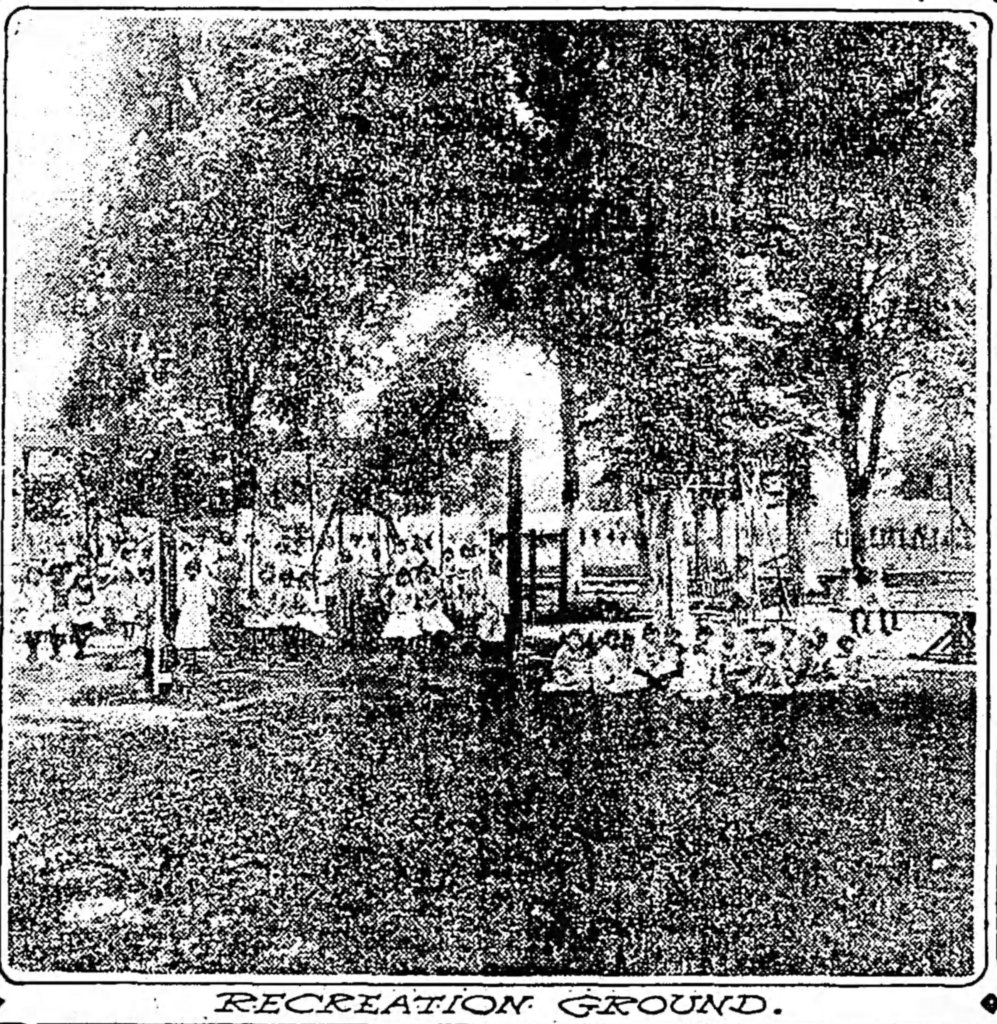 Recreation was an important element and large playgrounds were provided to both boys and girls. The “national game” found many adherents among the boys. There was a large playroom fitted for the boys for when the weather was not conducive to outside play.