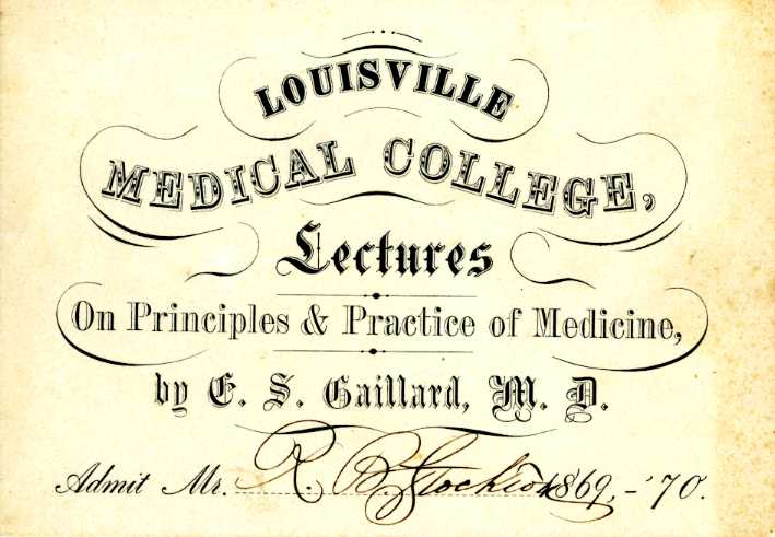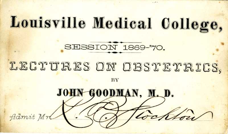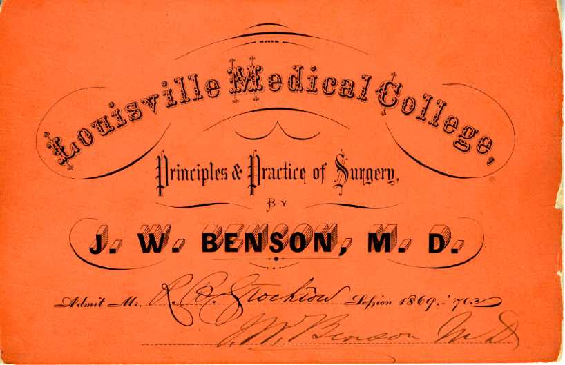 Louisville Medical College Matriculation Tickets