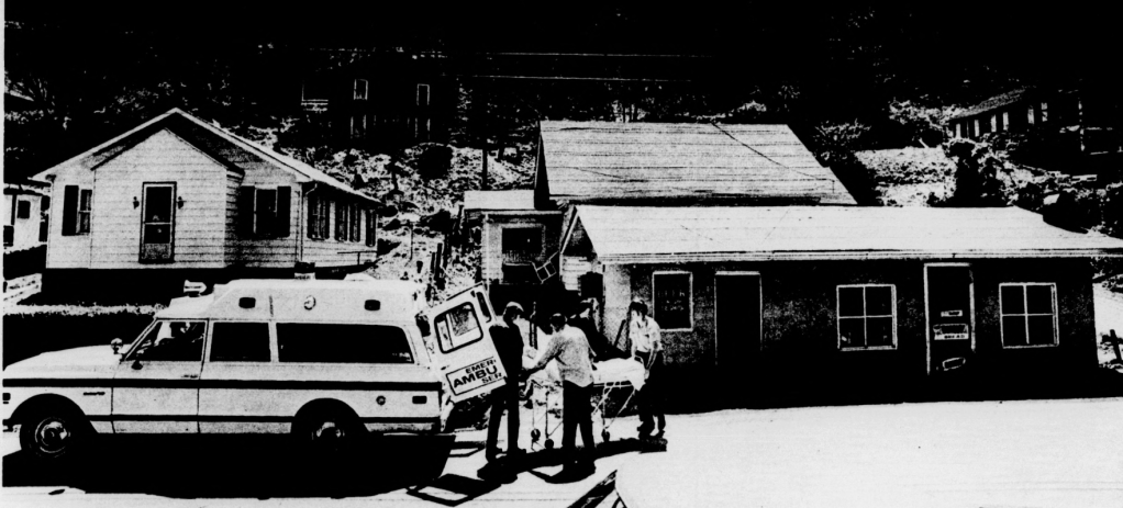 Appalachian Regional Hospitals, Inc. operated an eight-county ambulance service with a home-base at the ARH Hazard where trained attendants could reach into the hills to service more people in Eastern Kentucky. Pictured is an ambulance transporting a sick elderly woman from her home to the emergency room in Hazard.