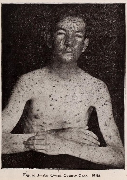 By 1903, anyone in the Commonwealth of Kentucky who had been exposed to smallpox and is liable to take the disease and refuses to seclude himself was subject to be taken to any justice of the peace of the county and confined in some secluded place, at his own expense, until such time that the disease has passed through or if the person is released by the Board of Health. Every person in Kentucky counties, including children over the age of three months, who has not been inoculated with the smallpox vaccine is required to be vaccinated immediately. If families were unable to pay the fee for the smallpox vaccination then families were encouraged to inform their physician who would inform that county and foot the fee(s) for the vaccination. Any person who had smallpox and went upon the streets, highways, or elsewhere, so as to expose others to the disease, was subject to a fine of not less than one hundred dollars and not more than one thousand dollars. Anyone who refused to obey any of the rules and regulations of the Board of Health was to be fined not less than ten dollars and not more than one hundred dollars.