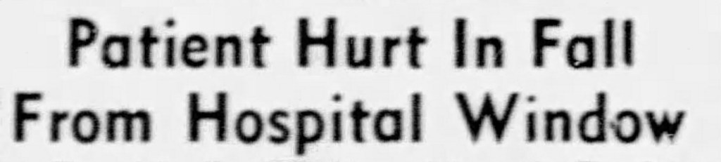 30-year-old David S. White, originally from Corbin, Kentucky, was previously admitted as a patient to the Wayside Hospital in Lexington on May 12, 1949, for epilepsy and an undisclosed mental illness. According to one report in the Lexington Herald-Leader, on May 15, 1949, White left Wayside Hospital without being discharged; according to the report, White’s “kinsmen” returned him to the hospital without incident. However, the next day, on May 16, 1949, jumped from a second-floor window at the hospital falling to the sidewalk resulting in multiple injuries. Some reports indicated he only injured his left leg and sustained bruises while others say he broke his arm, leg, and foot. White was transported to St. Joseph’s Hospital in Lexington to receive treatment. On May 17 he was reported to be in fair condition. The Lexington Herald reported that hospital attendants confirmed that the incident occurred and that White sustained injuries and that the local police were not reported the incident.